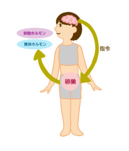 卵巣は、この下垂体からの司令によって2種類の女性ホルモン=「卵胞ホルモン(エストロゲン)」と「黄体ホルモン(プロゲステロン)」を分泌し、生理のリズムを作り出します。